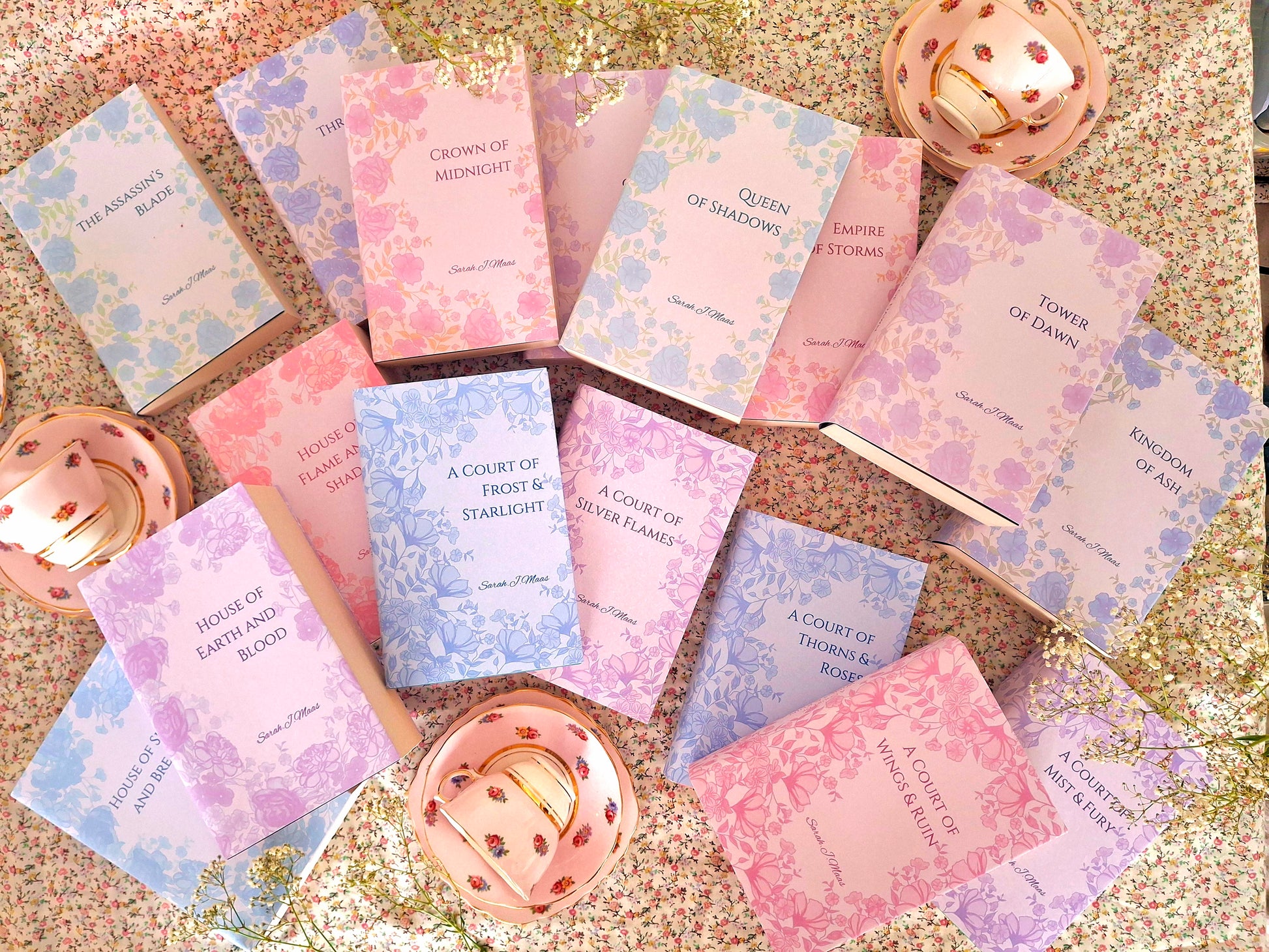 Here we have beautiful customisable Pink, Lilac and Blue floral dust jackets for your book series of your choice.