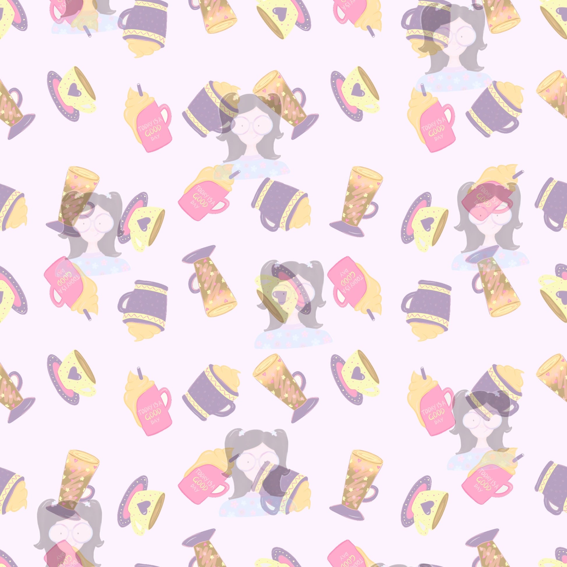 Cute Pastel Tea and Coffee Pattern In 4 different colour schemes. Item contains all 4 colours.